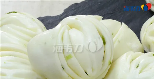 3、把拉出的细面丝切成7厘米长的段,放在皮子中间,撒上熟鸡肉丝,四面对折,包紧包严,呈枕头状,上笼用大火蒸约20分钟即熟。